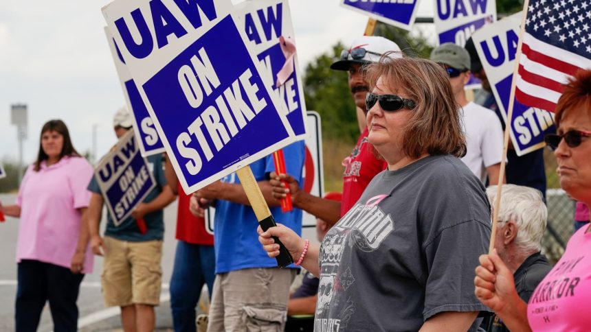 General Motors, Ford, Stellantis — GM and Ford fell less than 1% and Stellantis rose less than 1% after the United Auto Workers went on strike Thursday night. About 12,700 workers at three key assembly plants walked out, according to the union.