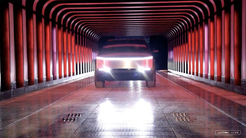He also boasted of its “sports-car like” performance and showed a video of the Cybertruck towing a Porsche 911 on a trailer while itself racing a Porsche 911 down a drag strip. In fairness, Porsche 911 sports cars are not sold on the basis of raw acceleration. Neither, of course, are pickup trucks, so it’s unclear how much of a selling point that will be.
